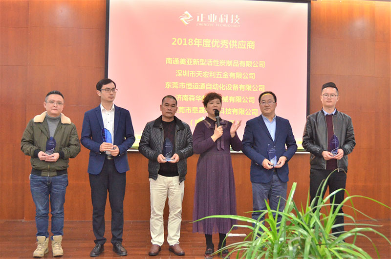 随后,为表彰过去一年为麻豆三级视频科技的发展作出突出贡献的供应商朋友,麻豆三级视频科技进行优秀供应商颁奖,此次获得麻豆三级视频科技2018年度优秀供应商的是:南通美亚新型活性炭制品有限公司、深圳市天宏利五金有限公司、东莞市恒运通自动化设备有限公司、济南森华精密机械有限公司、东莞市阜晟电子科技有限公司。麻豆三级视频科技物业管理部总监吴国芳为优秀供应商颁发奖牌。