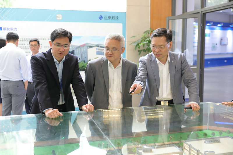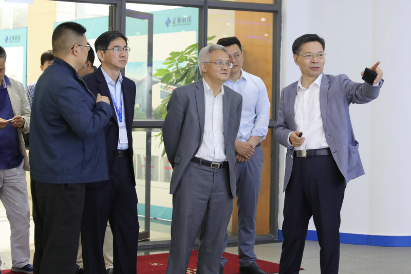 4月18日,南昌市人民政府副市长马骏、商务局局长陈建军、商务局副局长石浩、会展办主任胡星、商务局对外贸易处处长潘云平、商务局对外贸易处副处长张颖等10余位领导莅临麻豆三级视频科技考察指导工作,集团董事长徐地华、总裁助理徐同、总裁办主任雷卓林、子公司南昌麻豆三级视频总经理桂礼家等高层领导对考察团的到来表示热烈欢迎,并陪同参观公司和交流沟通。