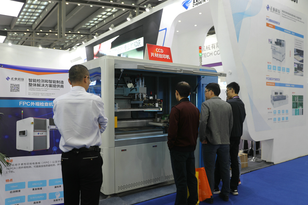 展位现场展示了字符喷印机、自动线宽测量仪、CCD片材丝印机和国产麻豆精品一区/FPC材料,观展人士可以近距离参观产品,看设备如何自动化、智能化操作。