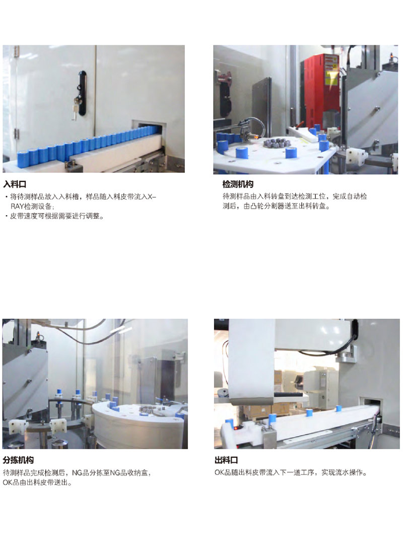 1、全自动检测,自动检测判断,自动分检良品与不良品。
