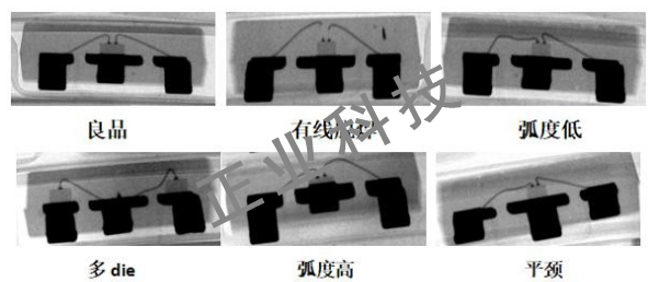 有线脱焊、塌线、跪线、弧度低、断颈、平颈、多die、弧度高、多余线、重复焊线、无线脱焊、颈部受损、胶水厚、线尾长、球厚/球大/球畸形等。