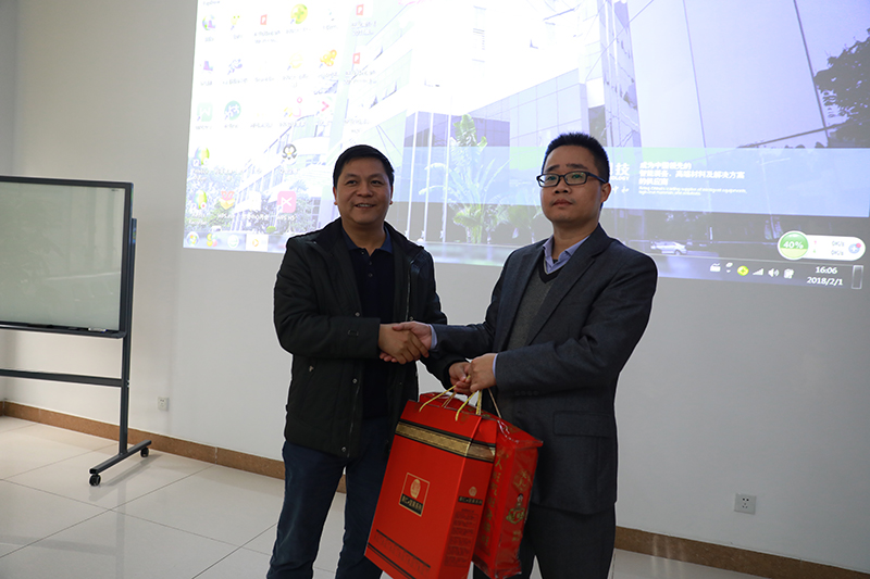 2018年2月1日下午,松山湖管委会委员、企业党委书记黄乐瑜,企业党委专职副书记、组织人事办副主任徐立青,群团工作局副局长魏扬等领导一行莅临广东麻豆三级视频科技股份有限公司慰问企业党员职工,与麻豆三级视频科技党支部进行了座谈交流,诚恳地为麻豆三级视频科技党支部的党建出谋划策,提出了诸多良好建议,并为麻豆三级视频科技党员职工赠送慰问礼品,送来热情的节日问候。