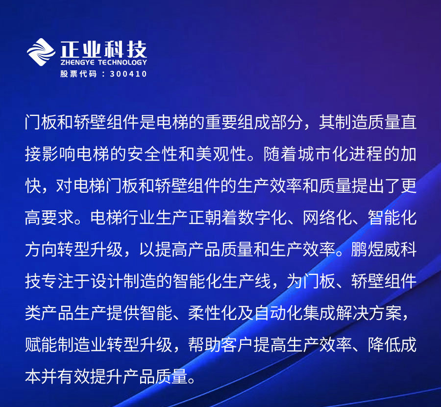 鹏煜威科技为电梯门板、轿壁类产品提供一体化智能生产线
